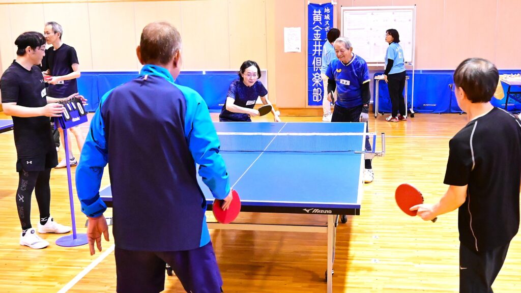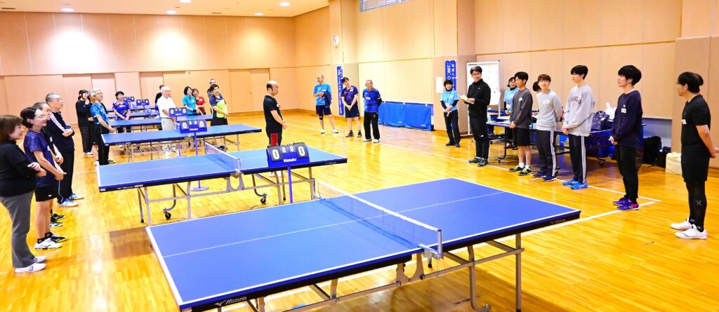 黄金井倶楽部の卓球教室の参加者20名と、法政大学の学生さん4名、そして職員の方2名もご参加いただき、